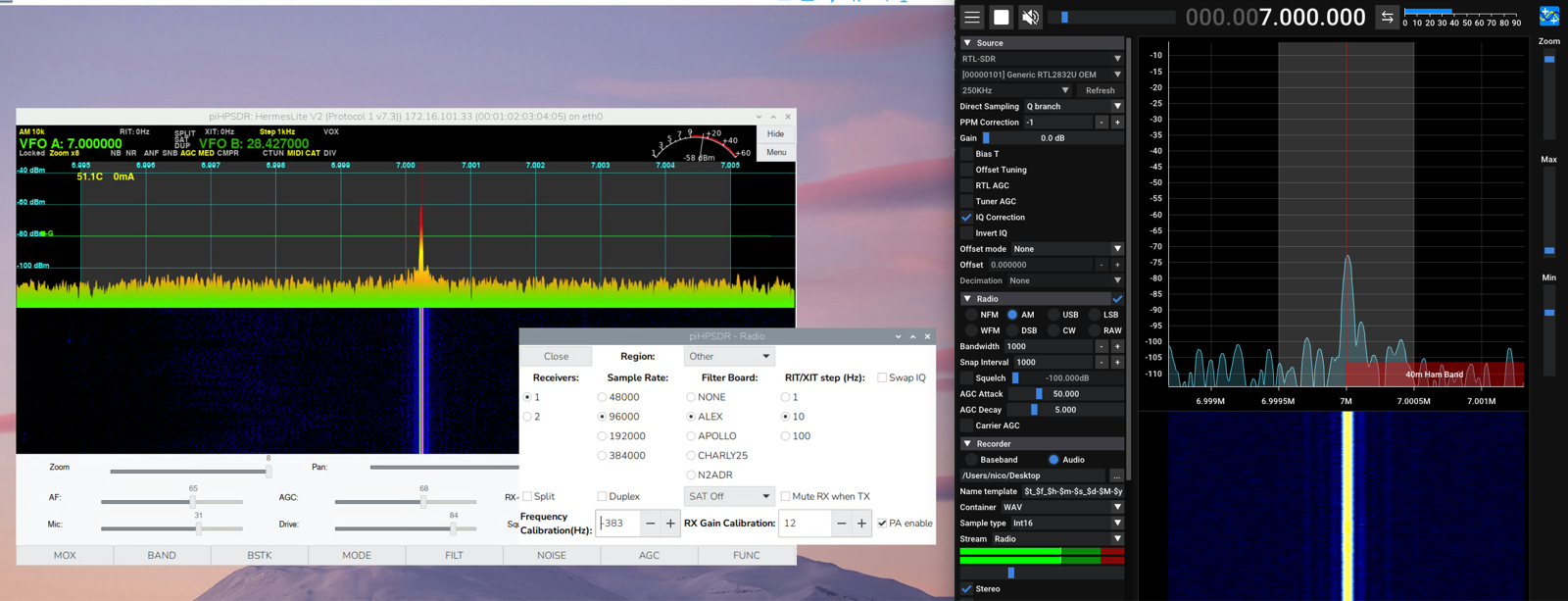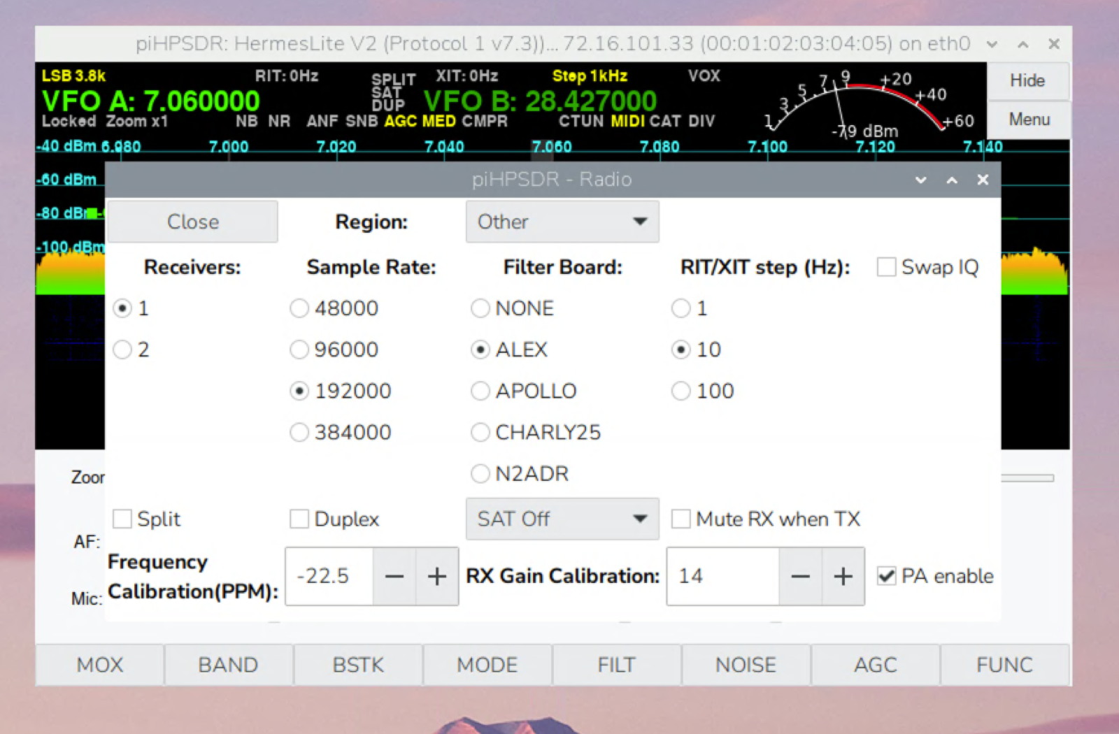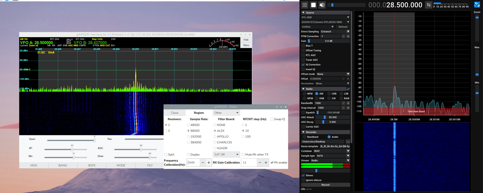 piHPSDR has a Frequency Calibration feature under Radio > Frequency Calibration, but it works by adding a fixed Hz offset to all frequencies. The problem with this approach is that crystal oscillator errors are proportional to frequency - if I calibrated the offset for 7 MHz (40 meters), by the time I tuned to 28 MHz (10 meters), the error was four times larger and the frequency was visibly off.