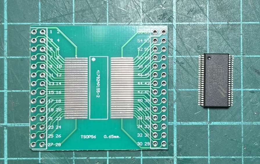 Unfortunately, the breakout boards turned out to be 0.65mm pitch instead of the 0.635mm the chip expects. Close enough to work, but I had to carefully bend the pins on each chip to make them fit.